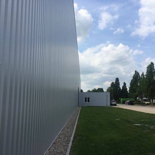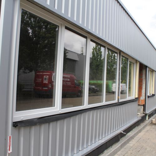 Die Maßnahmen umfassten die Neugestaltung der Innenräume mit modernen Büroräumen, lichtdurchfluteten Fluren und der Installation von Glasabtrennungen zur Schaffung offener, transparenter Arbeitsbereiche. Gleichzeitig wurde die Außenfassade mit langlebigen Metallverkleidungen erneuert, die sowohl das Erscheinungsbild des Gebäudes modernisierten als auch die Energieeffizienz verbesserten.